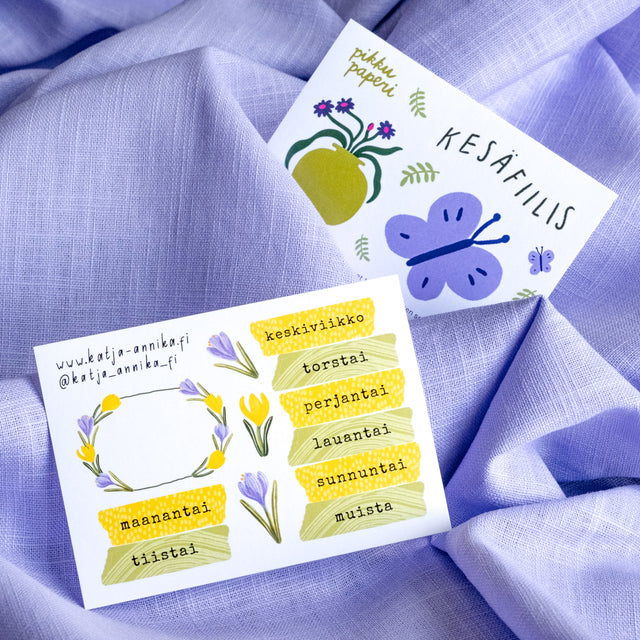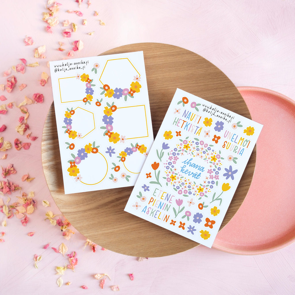 Katja Annika tarjoaa tarroja kalenteriaskarteluun ja bullet journal -harrastukseen. Olen itse intohimoinen bujoilija ja saan inspiraatiota tarroihini omassa bullet journalissani kohtaamistani tarpeista.